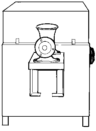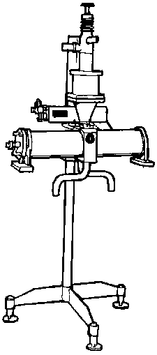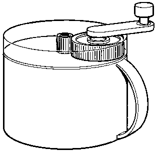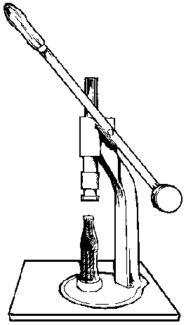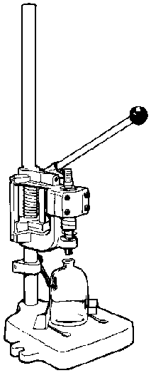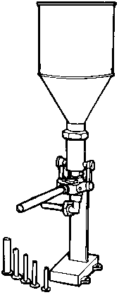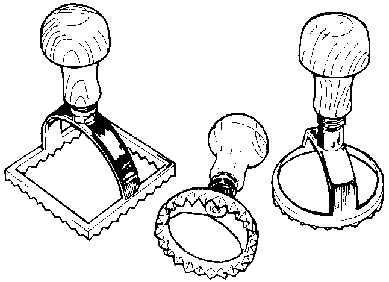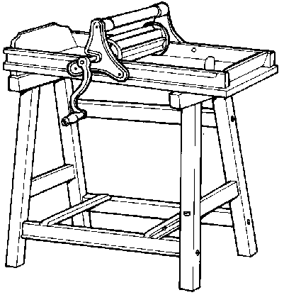 This is a hand-operated piston-type extruder for dough-like materials, and is available in many variations in Asia. It can be fabricated from metal or wood, with either a fixed or interchangeable die plate. Dimensions: 8 x 25 x 7cm.
