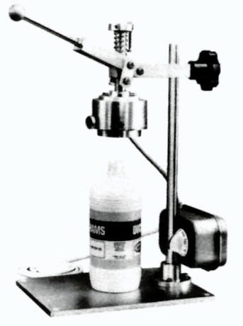 This hand-operated stainless steel extruder consists of two main components: a hollow body fitted with an interchangeable die plate, and a lid fixed to a movable central screw.