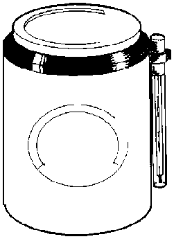 This small industrial pan is made from stainless steel and has an outlet tap at the bottom. The lid is attached by a hinge and bracket.