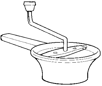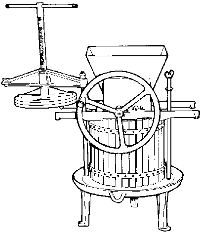 Fruit is positioned on a central pivot. As the handle is turned the fruit is revolved over a stationary knife and the peel is removed.