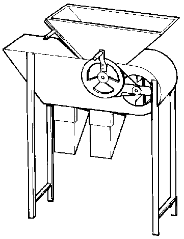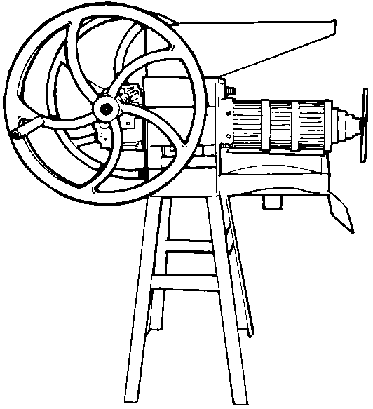 This prototype model uses a centrifugal blower fan to separate the grain from the chaff. The improved model works at about 99% winnowing efficiency. An integral motor is included and the machine is freestanding. Throughput: 466kg per hour.