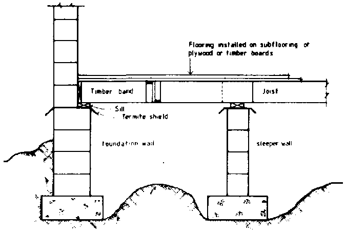 Timber ground-level floors must be well protected against moisture, fungus and termites and must therefore be raised above the ground. The space under such a timber floor should be high enough to ensure good ventilation and to allow a person to crawl underneath for inspecting the floor. Termite protection is more likely to be effective if the floor is raised above the ground at least 45cm.