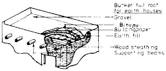 Figure 5.39 Earth roof with bitumen waterproofing.