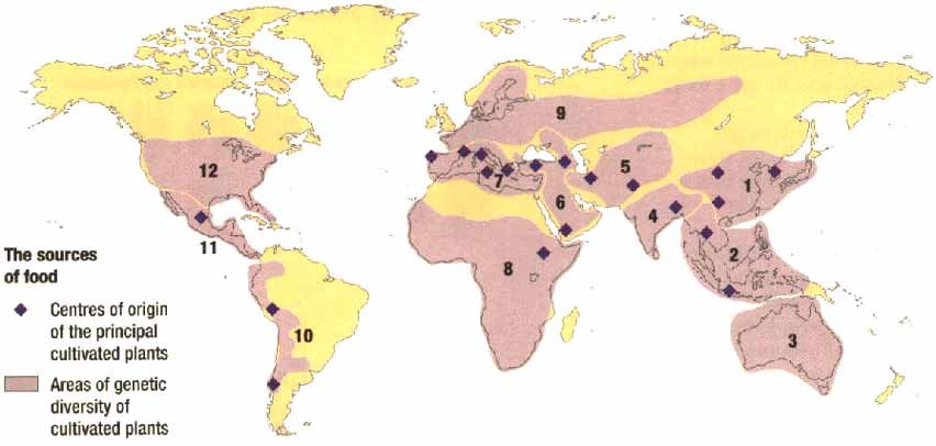 7. Mediterranean region beetroot, cabbage, celery, fava bean, grape, lettuce, oats, olive, radish, wheat 8. African region 9. European-Siberian region |