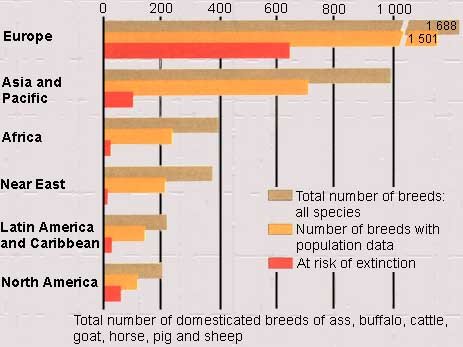 In India, there will soon only be 30-50 rice varieties covering an area where 30 000 once flourished. Half of the animal breeds that existed in Europe at the start of the present century are now extinct, and one-quarter of the livestock breeds in the rest of the world are now at high risk of loss. The traditional knowledge and skills of indigenous peoples who selected, bred and cultivated such varieties over thousands of years - are also disappearing, often along with the people themselves.
