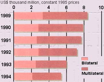 Official aid to agriculture in the developing countries rose from some US$ 11 000 million a year in the early 1980s to US$ 14 000 million in 1988 but has now plummeted to less than US$ 10 000 million a year in today's values. The private sector, including farm households, provides 80 percent of all investment. Public spending on agriculture within developing countries has also fallen. It is difficult to calculate exactly how much is spent every year, but FAO data suggest that between 1977 and 1992 some US$ 26 000 million a year was invested in on-farm improvements and some US$ 16 000 million a year in post-harvest facilities and in agro-industry.