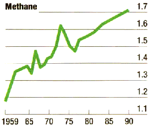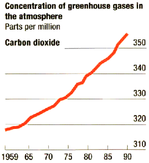 Contribution of greenhouse gases to global warming, 1980-90