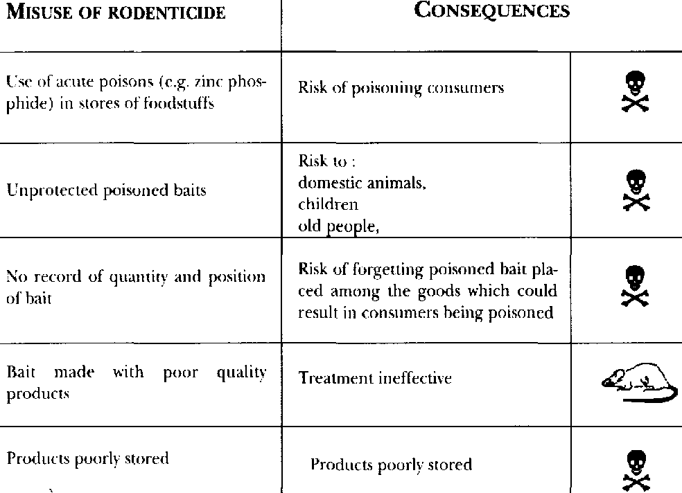 TABLE 5 - The consequences of incorrect procedures when using rodenticides