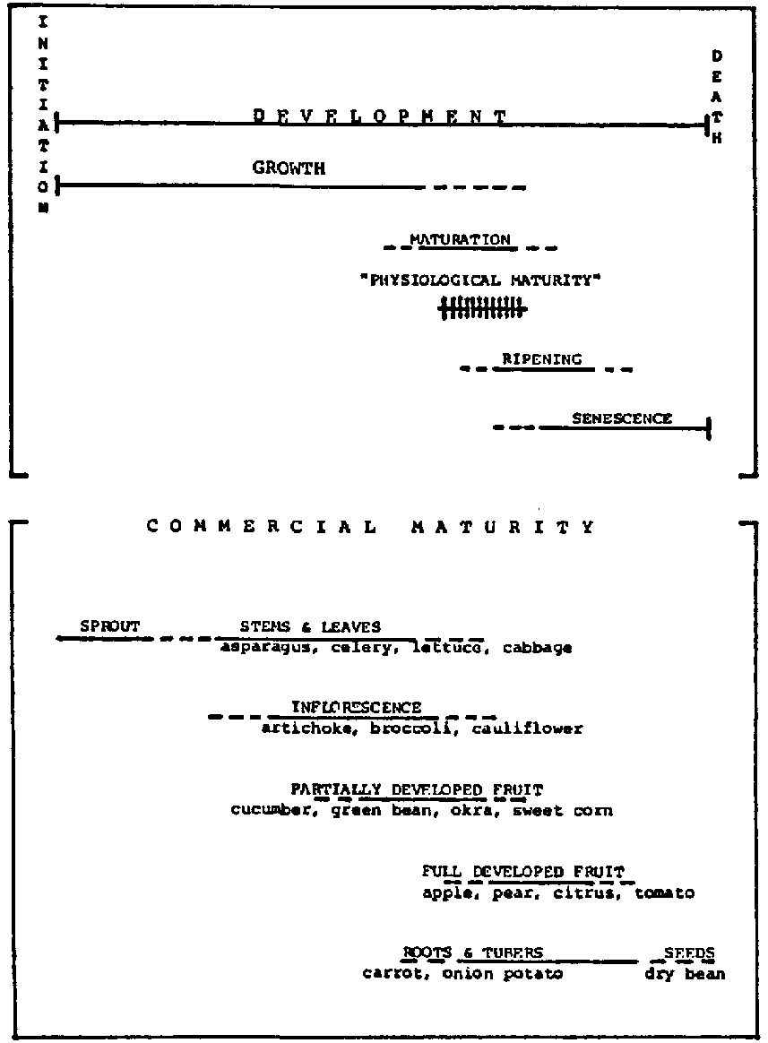 (iii) Fruits --Harvesting methods for fruits are variable and depend to some extent upon whether they are immature, mature green or ripe when harvested: