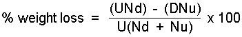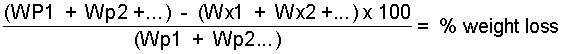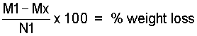 If the submitted sample was obtained some weeks or months after the beginning of the study, the weight loss occuring in that occasion can be calculated by using the formula:
