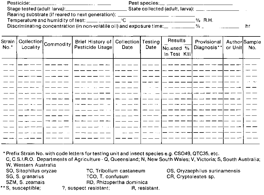 REPORT FORM FOR MONITORING TESTS FOR RESISTANCE OF STORED PRODUCT PESTS TO PESTICIDES FORM 1
