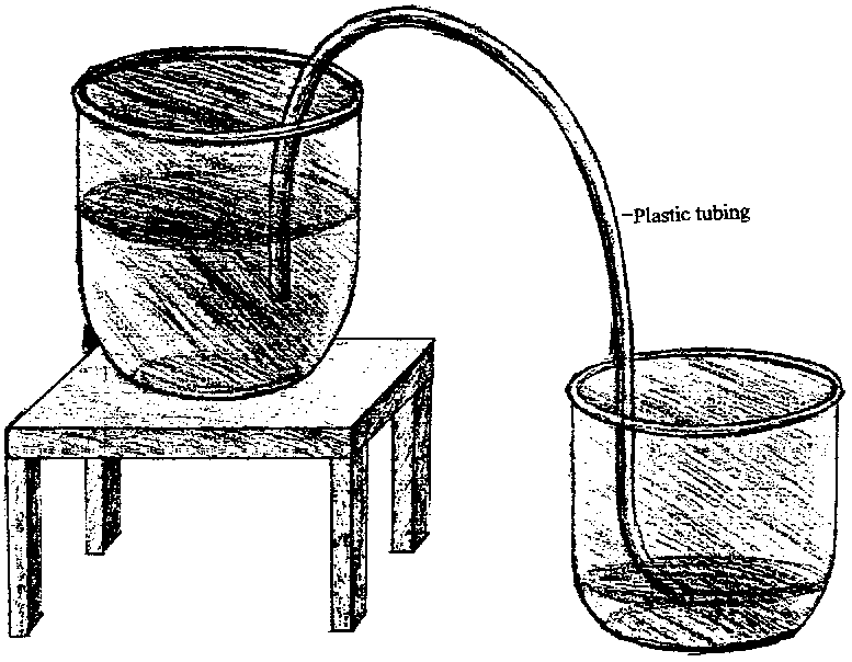 Syphoning: drawing liquid from one container to another.