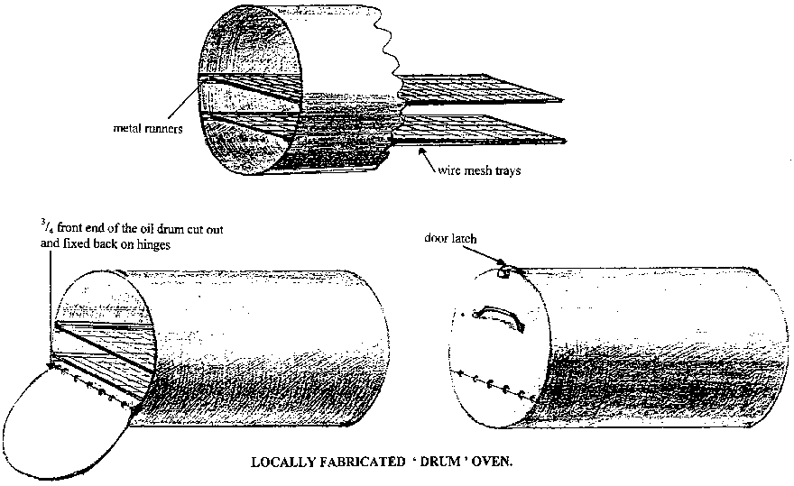 Locally fabricated "drum" oven.