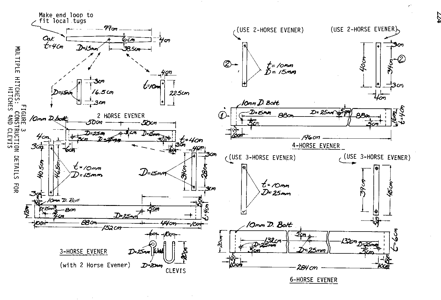 Figure 2 muestras eveners más simple que puede usarse con los caballos, bueyes, o bueyes.