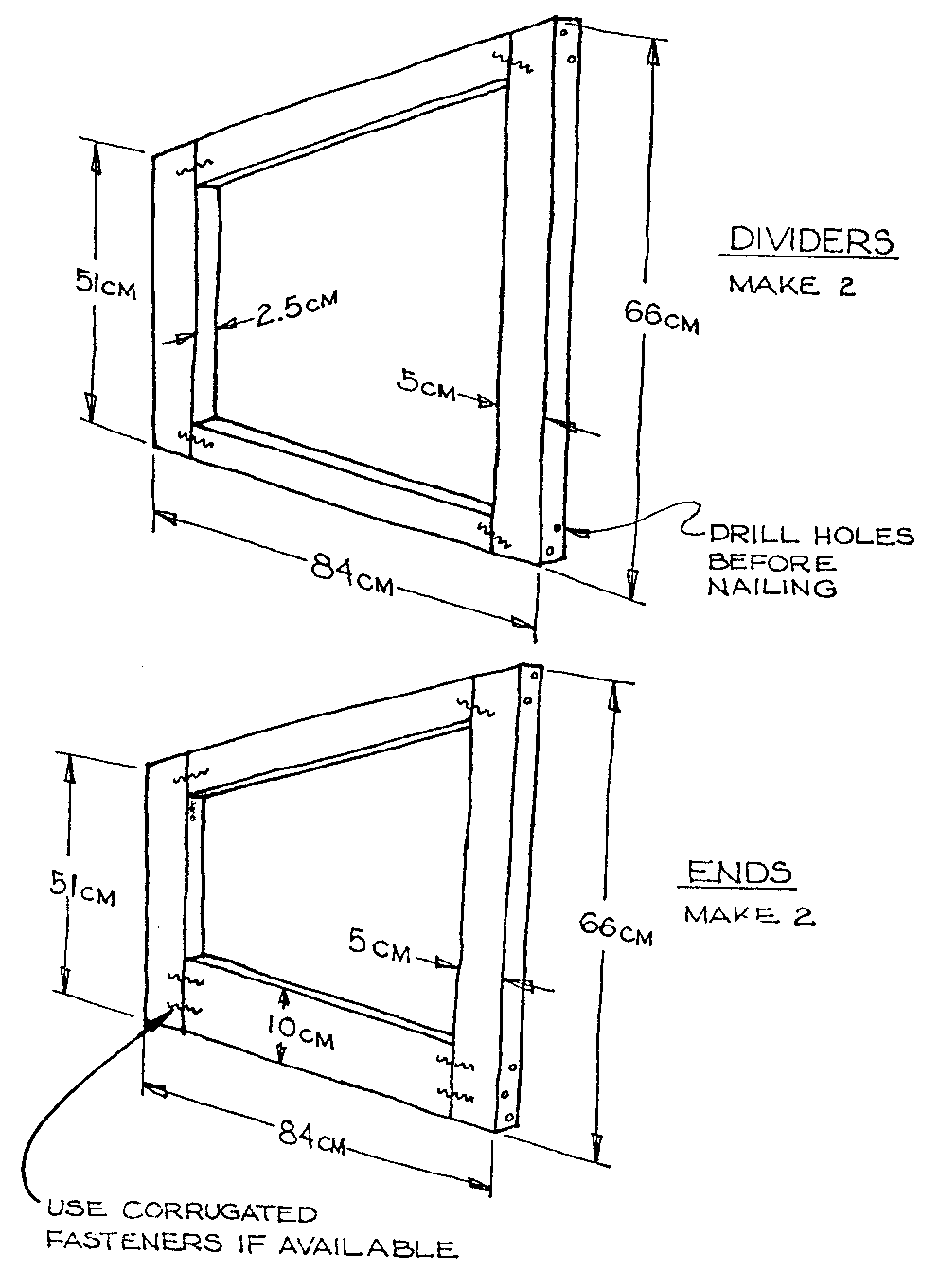 * Dans cette huche, les boîtes du nid ont fait de cageots du bois