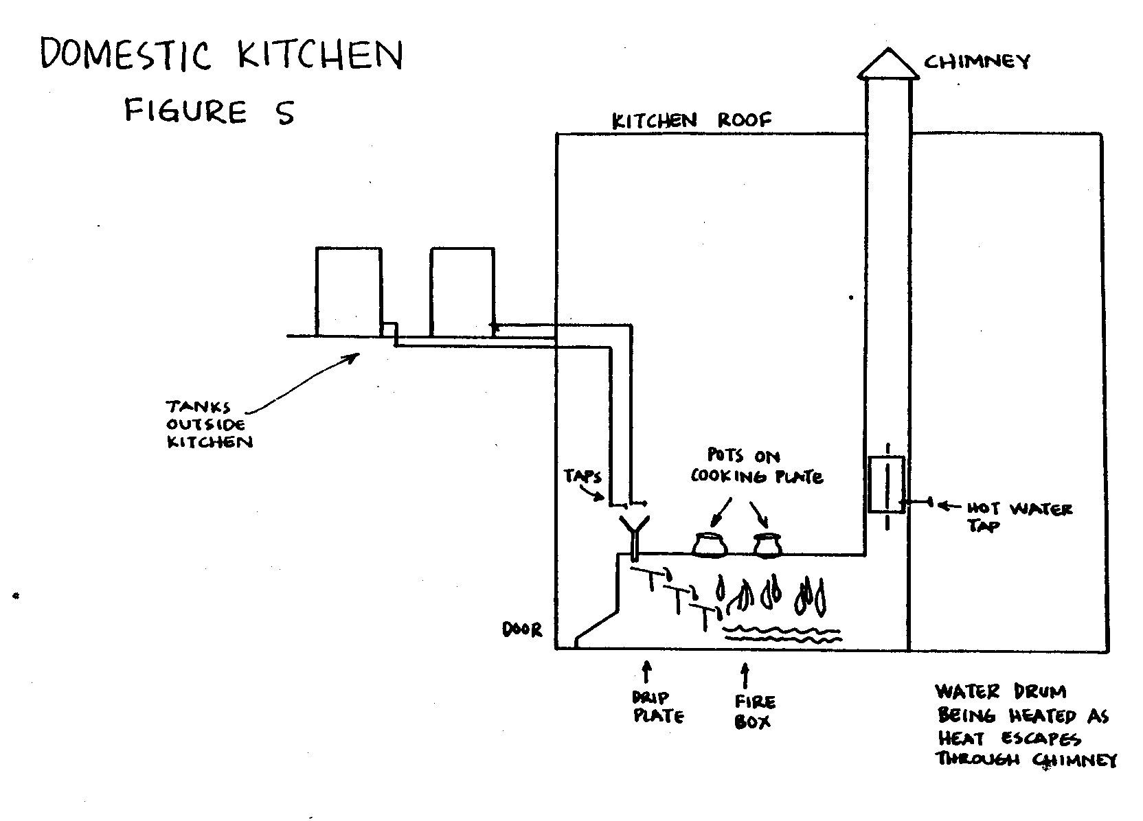 trogolo di metallo, caduta attraverso un buco sulla cima di focolare, e sopra le schizzare-piatto.