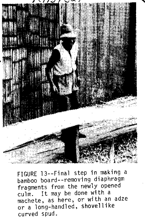 Podem ser divididos culms de bambu e podem ser aplainados para formar tábuas para uso embainhando,