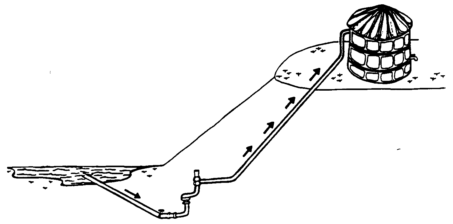 onde água tem que ser erguida de uma fonte de água a um mais baixo nível