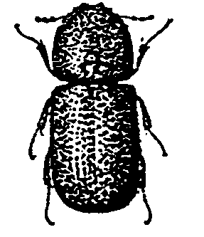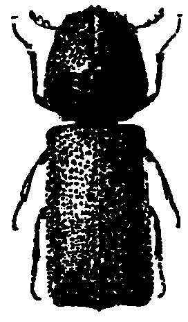 Dinoderus spp., portent deux légères dépressions à la base du pronotum. Sur cossettes de manioc et occasionnellement sur d'autres denrées stockées.