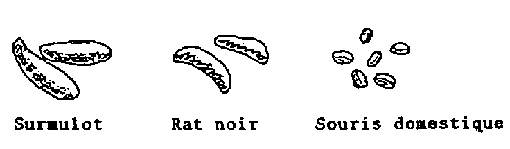 Les caractères distinctifs des principales espèces de rongeurs nuisibles aux denrées stockées figurent dans le tableau et l'illustration que l'on trouvera ci après.