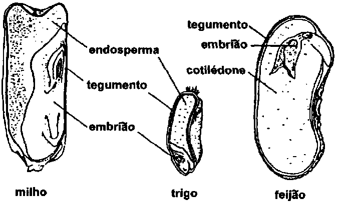 Os componentes mais importantes de uma semente são: