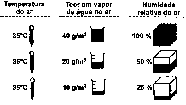 A humidade absorvida pelo ar em forma de vapor de água é chamada humidade absoluta do ar e exprime-se em g/m² de ar.