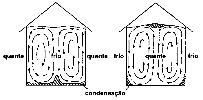 Quando os raios de sol aquecem as paredes exteriores de um armazém, aquece-se também o ar interior que se encontra perto da parede. O aumento de temperatura faz baixar a humidade relativa. O ar pode assim absorver a humidade adicional contida no produto armazenado. Quando este ar entra em contacto com superfícies mais frias, esfria-se o mesmo e a descida de temperatura faz subir a humidade relativa, podendo ate ultrapassar o ponto de saturação e resultar em condensação. O mesmo acontece quando a temperatura exterior é mais baixa que a do interior do armazém.