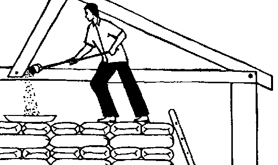 Passe com uma vassoura ou com um bastão por cima das pilhas de sacos para molestar e descobrir as traças que estão repousando! Levante os sacos para poder detectar possíveis casulos ao longo da linha de contacto entre os sacos.