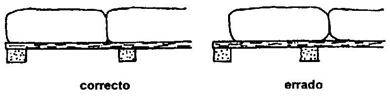 A superfície das tábuas de apoio não deve ser inferior a aprox. 40% da superfície total da paleta, para evitar que a parte inferior dos sacos seja danificada pela pressão dos outros sacos.