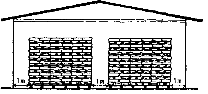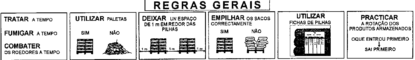 - Empilhe os sacos vazios sobre paletas a uma distancia de 1 m da parede. Fumigue os sacos vazios depois da sua utilização!