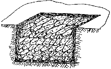 Le silo-fosse constitue une méthode typique de conservation dans les champs. Pour mettre en place ces silos-fosses, on creuse une fosse dont le volume correspond à peu près à celui de la récolte que l'on prévoit. Cette fosse est ensuite tapissée de paille ou de matériaux similaires (NWANKITI et MAKURDI, 1989). Les tubercules sont ensuite disposés soit à l'horizontale, les uns sur les autres, soit à la verticale, pointe vers le bas et les uns contre les autres. On ignore encore à l'heure actuelle si le mode de stockage - à l'horizontale ou à la verticale - a une incidence quelconque sur le comportement des tubercules au stockage.