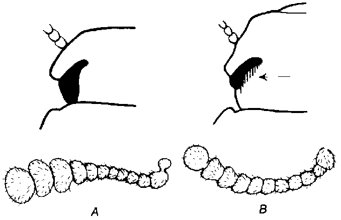 Fig. 61. A, Blaps sp.; B. Tenebrio molitor (d'après SCHRODER, BOGDANOV-KATJKOV).