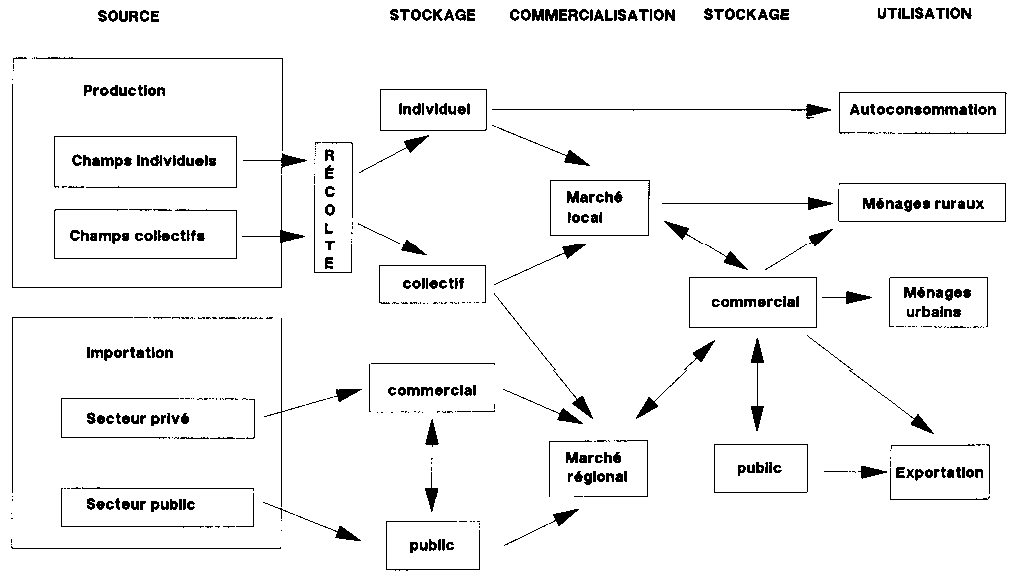Le système de post-récolte des petites exploitations agricoles, et en particulier le système de stockage pratiqué au niveau individuel, constitue le système partiel essentiel au sein du système global de post-récolte (cf. figure 3.1).