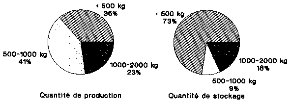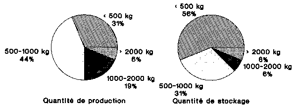 Les quantités produites et les quantités emmagasinées ont été établies directement dans le cadre des essais (figures 5.2 à 5.4). En se plaçant du point de vue spécifique de la production ou de celui des besoins, il est par ailleurs possible de déduire ces données des collectes effectuées sur les exploitations.