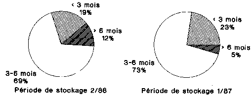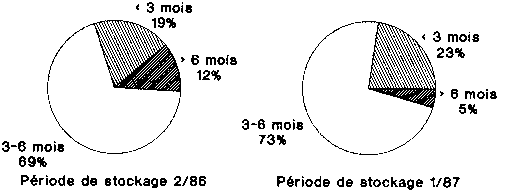 Fig. 5.5: Durée de stockage lors des essais 2/86 et 1 /87; (en % de n = 16 et n = 22 exploitants)