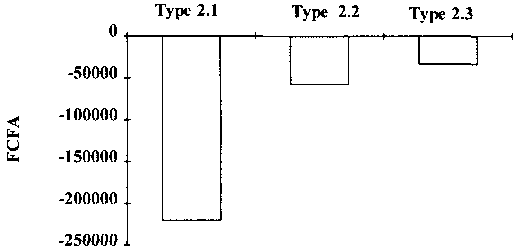Fig. 21: Budget annuel des recettes et dépenses des trois types à financement différent