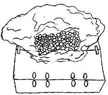 La empacadora ilustrada a continuación se hace con paredes de red metálica que contienen carbón. La humectación del carbón por la mañana hace que la estructura se enfríe por evaporación durante el día.