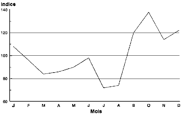 Figure 4.4: Indice saisonnier des prix en gros de la patate douce à Santo Domingo, en République Dominicaine, 1968-1977