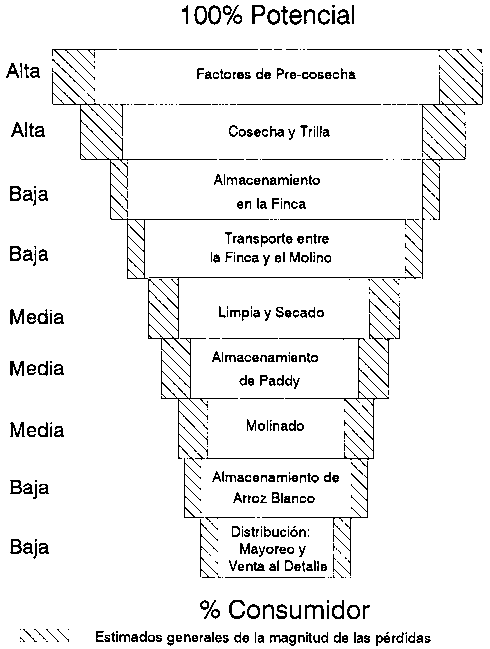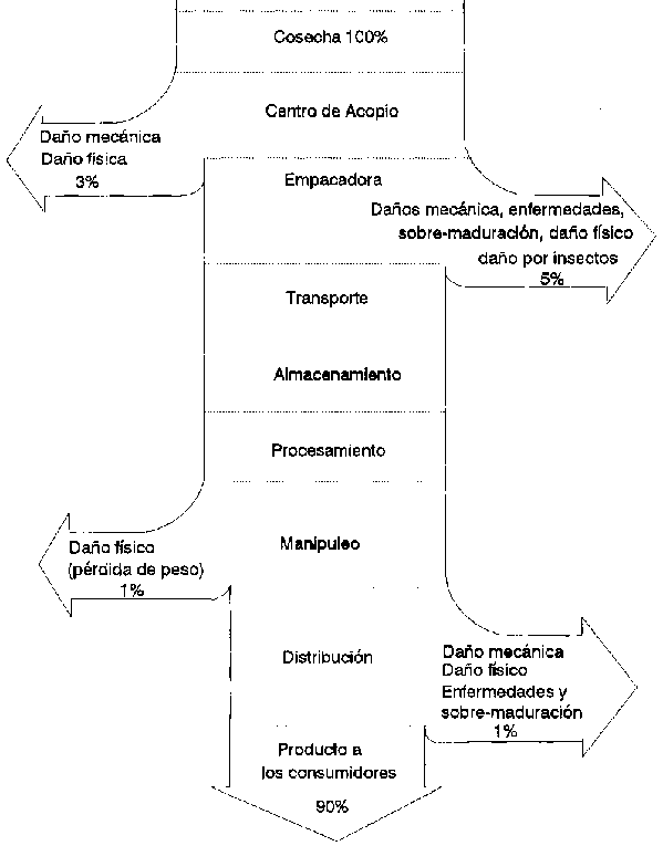 Un sistema ideal de alimentos permite al producto moverse desde la finca al consumidor, llegando a su destino final con un precio que el consumidor está dispuesto a pagar y con mínimas pérdidas en cantidad y calidad. Las pérdidas que ocurren en una cadena agro-alimenticia indican ineficiencias dentro de ese sistema en particular. En muchos casos, el costo de reducir una pérdida-por ejemplo, usando almacenamiento; refrigerado o introduciendo un mejor empaque-es mayor que el valor del producto salvado por la innovación.