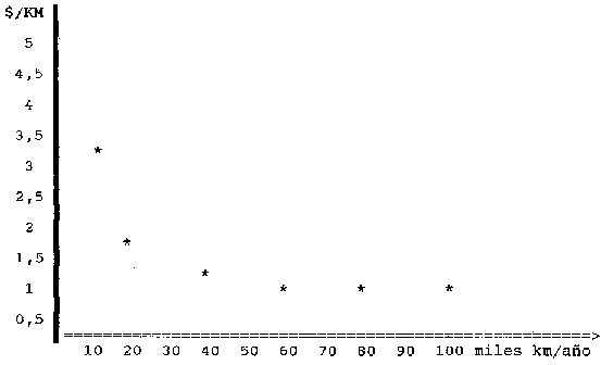 LOS CALCULOS PRESENTADOS SON MAS QUE ELOCUENTES, PODEMOS OBSERVAR LA NOTABLE DISMINUCION DEL COSTO POR KM A PARTIR DE LOS 30-40 MIL KM RECORRIDOS AL AÑO, LA MAGNITUD DE LOS DISTINTOS COMPONENTES DEL COSTO, LA INCIDENCIA DE LOS GASTOS DE CONSERVACION Y REPARACION, DEL COMBUSTIBLE, ETC..