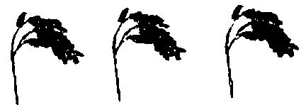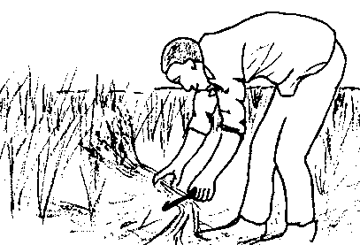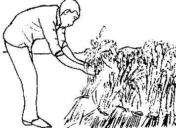 1. Dans votre parcelle, choisir TROIS EPIS, bien JAUNES ET DORES, 1 au Centre et 2 aux endroits où le riz pousse bien, sans mauvaises herbes.