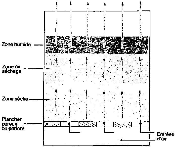 Figure 6.15 Zones de séchage dans des cellules de stockage ventilées par le bas.