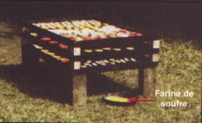 4. Disposer le plateau en aluminium contenant le soufre à côté des claies (non en-dessous) et du côté d'où vient le vent.
