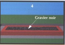 - Une fois le pourtour terminé on remplira le trou, soit de gravier noir d'environ 6 à 8 cm, de rejets de métal provenant d'ateliers ou de vieilles boites de conserve (Voir dessin no 4)