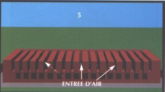 L'air extérieur pourra pénétrer à la base du séchoir par de petits tunnels de la même hauteur que la première rangée de briques et d'environ 5 à 8 cm de largeur. L'air entrera du coté Sud seulement. Voici comment les fabriquer: