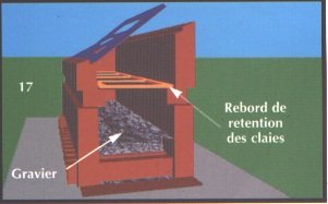 Du gravier noir de 6 à 7cm qui sera déposé au fond du séchoir sur les canalisations d'air. Faute de gravier noir, on pourra utiliser des morceaux de métal ou de tôles de 7 à 8cm.