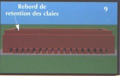 Le maçon terminera le séchoir en faisant une bordure sur le dessus du séchoir. Pour ce faire il faconnera le pourtour extérieur du séchoir avec de la boue d'argile et des morceaux de briques de longueur variable de 4 à 5 cm de hauteur par 7cm de largeur.