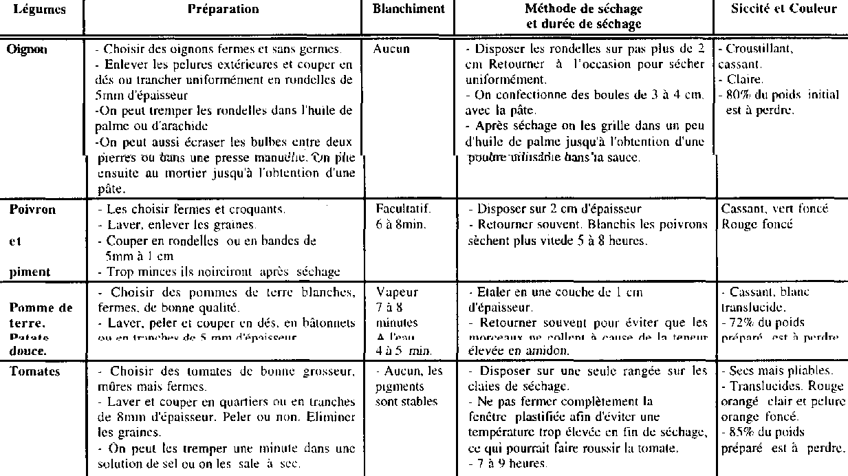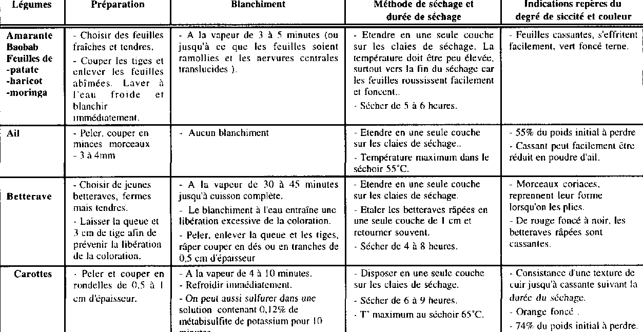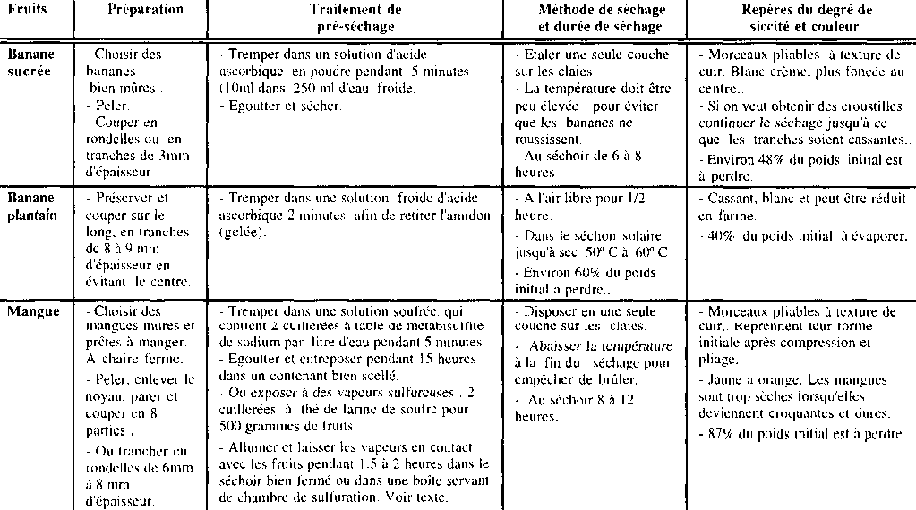 TABLEAU I GUIDE SUCCINT POUR LA PREPARATION ET LA DESHYDRATATION DES FRUITS Partie 2