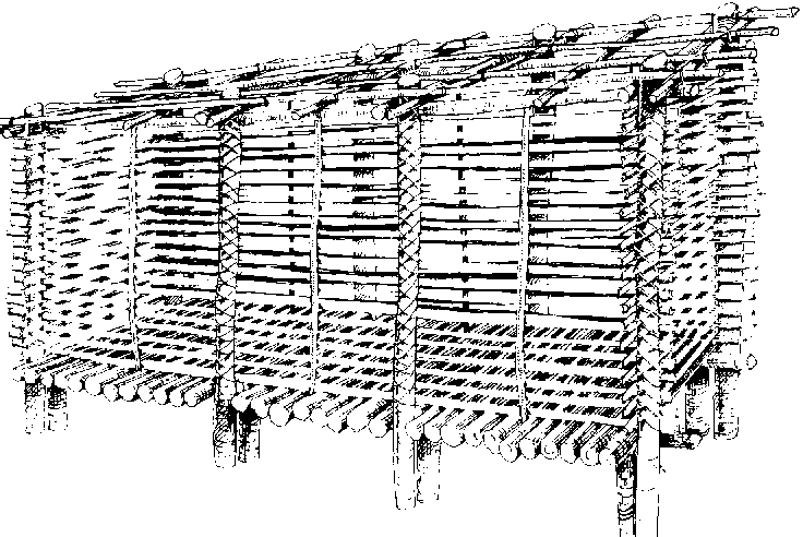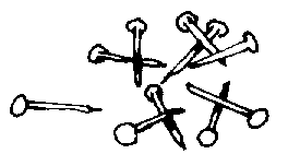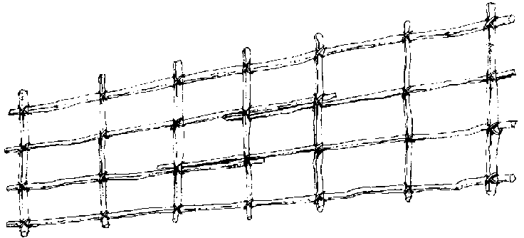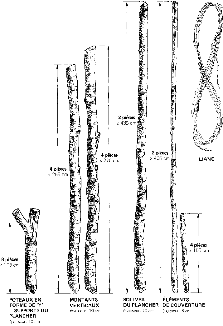 Au lieu des lianes, on peut utiliser des clous pour attacher les eléments des murs et renforcer l'ossature. I l faut 1 kg de clous de 5 cm.