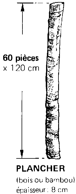 Au Nigeria, les perches en teck sout vendues en 8 m de long. En considérant les pertes, il en faudra 16 de cette longueur. Ces perches doivent avoir les dimensions suivantes:
